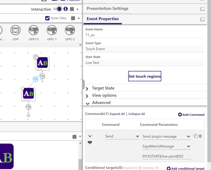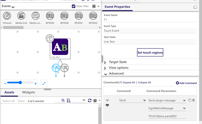For PICKSTART PICKEND dwell time add another Live Text widget with new commands. The first PICKSTART event starts the timer and transitions to the next Live Text widget. When the screen is touched again the PICKEND is sent with total dwell time calculated on the SignMetrix system.