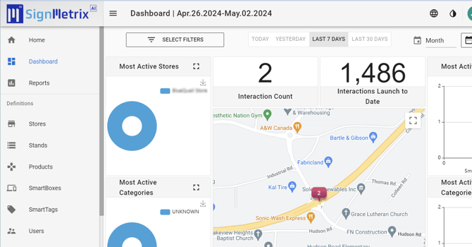 The SignMetrix plugin events in your presentation will automatically increment on the dashboard screen. Product names will be incremented and/created if they are not present. The system automatically knows where your player is using location and time zone data from the BrightSign Control Cloud