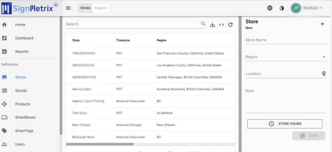 Click on Stores in the left panel. This will bring you to the Stores list. You will see your BrightSign players in the list. You can edit the details of each Store or Stand by selecting the Store or Stand and editing the options on the right panel.