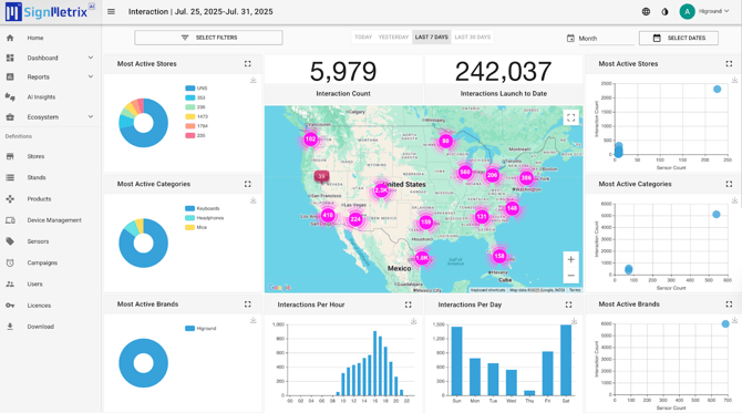 The SignMetrix system provides analysis tools for your digital signs. This analytics system tracks events and triggers in your BrightAuthor presentation, allowing you to monitor how your sign is performing at the endpoint. This is a very customizable system, allowing you to choose what events you want to post to the SignMetrix system. Example events include touch screen product selectors or the time duration a person interacts with your sign.