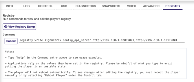 registry write signmetrix config_api_server http://192.168.1.100:9001,http://192.168.1.101:9001